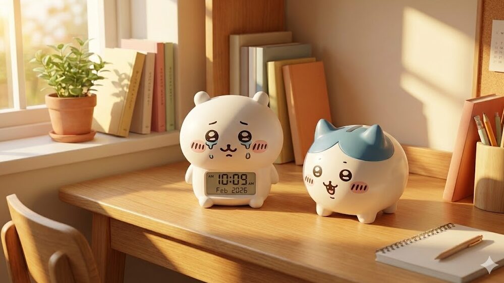 部屋のアクセントとして活躍する「ちいかわ ガチャガチャ 時計」と「貯金箱」は、2026年の技術革新が最も顕著に現れているカテゴリーです。 今月の新作「ちいかわ 置き時計〜2026 Edition〜」は、時刻表示だけでなく、室温と湿度を計測できるセンサーを内蔵しています。