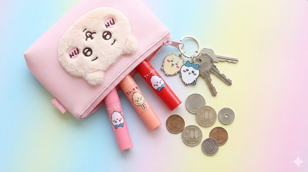 実用性が高いちいかわガチャガチャのポーチとリップケースの使用例