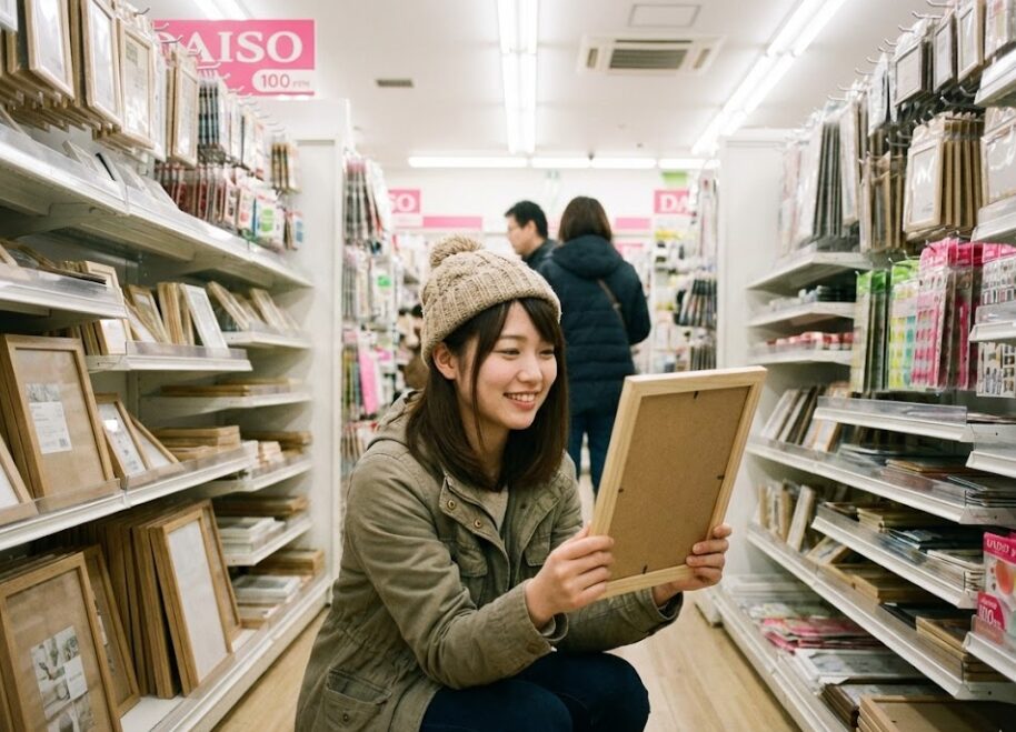100円ショップのポテンシャルを侮ってはいけません。ダイソーやセリアの額縁コーナーを覗くと、かつては数百円したポスターフレームやフォトフレームが驚くような低価格で並んでいます。ハガキサイズやL判はもちろん、A4、B4、A3、さらにはパズル専用の300ピース用、500ピース用までラインナップされている店舗もあります。