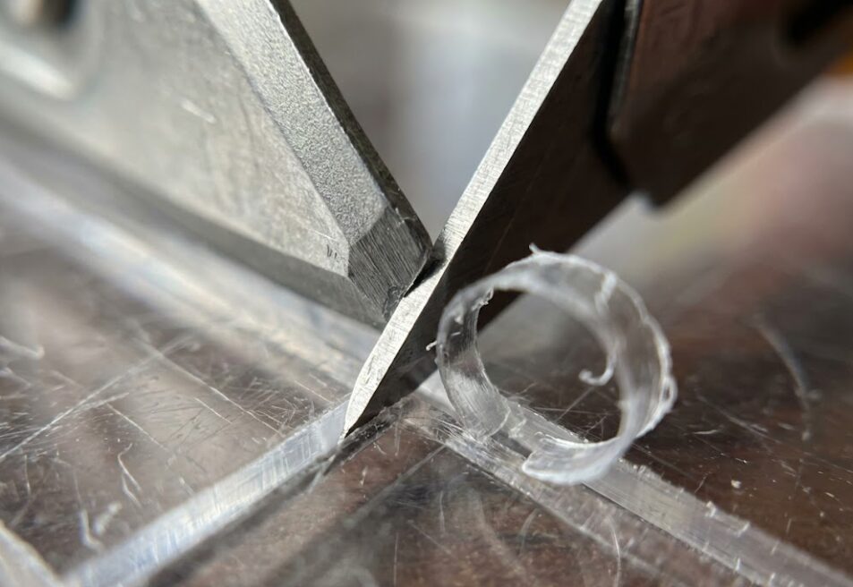 ただし、温度が高すぎると、断面が溶けて「めくれ」が生じたり、プラスチック特有の光沢が失われて曇ったりします。私はいつも、切れ端の不要な部分でテストカットを行い、「スッと刃が入るけれど、煙は出ない」という絶妙な温度域を確認してから本番に挑みます。