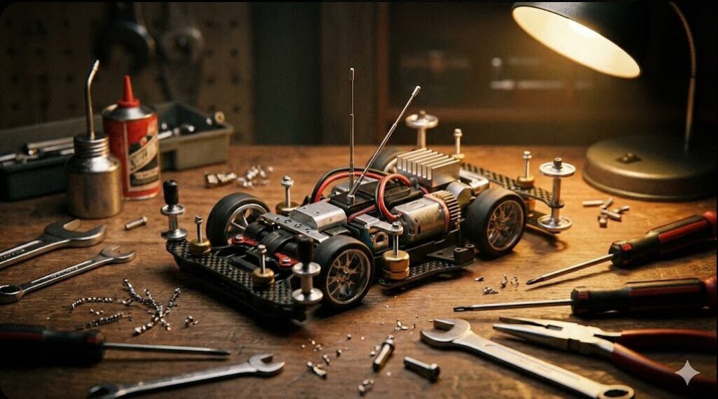 無事に予約が完了したなら、次に考えるべきは「届いてからどう遊ぶか」というロマンあふれる妄想です。トミカのライジングバードは、ミニ四駆としての魂を持ちながら、トミカという器に収まっています。そこでマニアの間で密かに囁かれているのが、トミカの極小RCユニットを移植する「ラジコン化」への挑戦です。